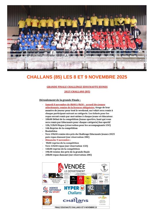 19h30 : Remise des prix du challenge Educnautes jeunes 2025 puis repas dansant (sur réservation)